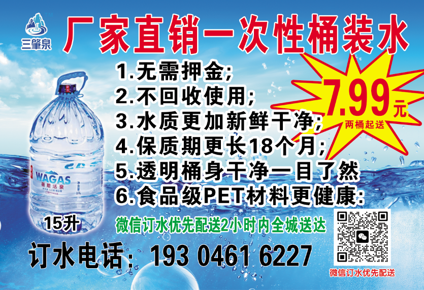 當前位置:首頁 > 生活服務 > 其它 > 廠家直銷一次性桶裝水(7.99元)
