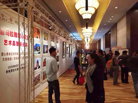 當天晚上8點,來自當地政府部門、行業組織、企業代表、媒體單位和其他社會各界愛心人士近500人齊聚一堂,現場座無虛席。在一段震撼人心的“尼泊爾地震”視頻后,活動正式拉開序幕。拍賣從當地攝影家的兩幅作品開始,隨后的藏香、藏式珠寶、唐卡、油畫等拍品讓現場的氣氛持續升溫,現場嘉賓被精彩紛呈的藝術品吸引,更為藝術家和收藏家們的慷慨捐贈所感染,紛紛舉手競拍,爭相獻出自己的愛心。在不到一個半小時的時間里,所有近20件拍品全部成交,共募集善款282800元。