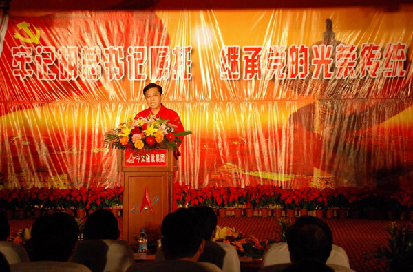 大會指出,5月23日我們接到上級組織交給的過渡安置房的安裝任務后,集團黨委書記、董事局主席李文健親帥公司數位領導多次前往災區督戰指導。已于6月15日超額完成了1500套過渡安置房安裝任務,兌現了胡錦濤總書記下達給我們的“軍令狀”。