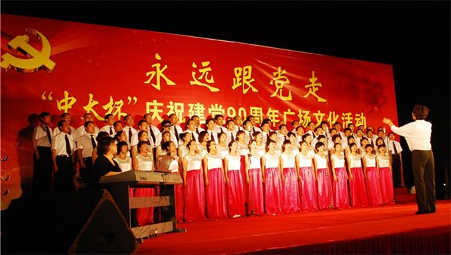 624晚,由市委宣傳部、市文廣新局組織的“永遠跟黨走”“中太杯”建黨90周年廣場文化活動紅歌合唱比賽晚會在廊坊市文化藝術中心廣場拉開帷幕。來自市區的11支合唱團進行了精彩比賽。經過激烈角逐,中太建設集團合唱團演唱的歌曲《沒有共產黨就沒有新中國》和《太行山上》獲最佳表演獎。