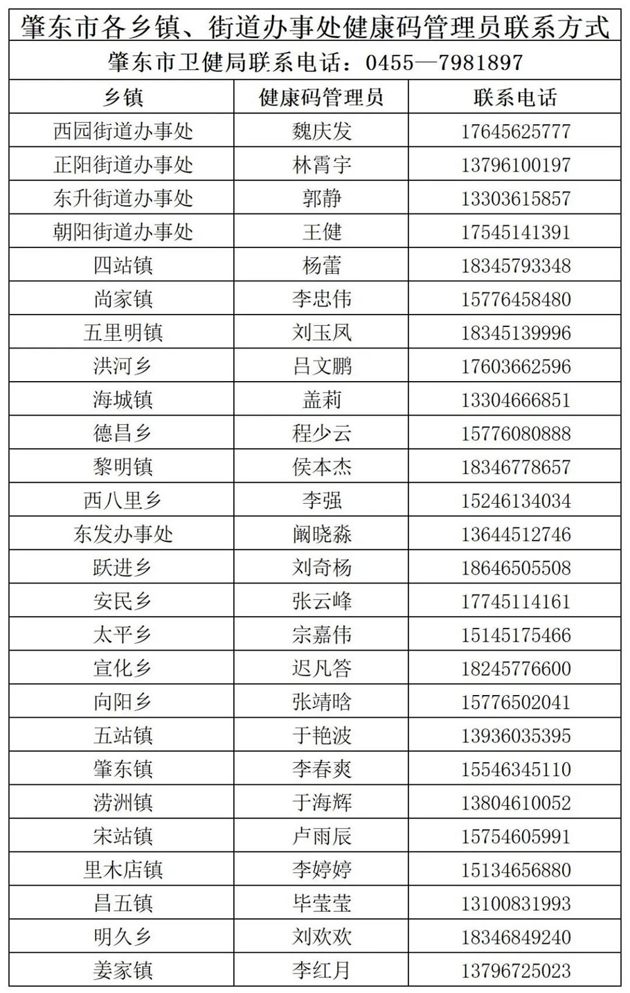 后附:肇東市各鄉鎮、街道辦事處健康碼管理員聯系方式