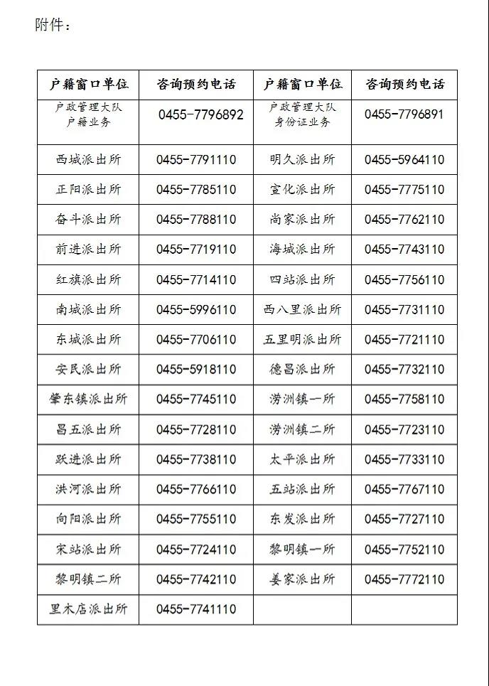 附件:公安機關戶籍窗口單位咨詢及預約電話