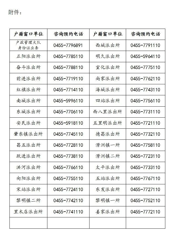附件:公安機關戶籍窗口單位咨詢及預約電話