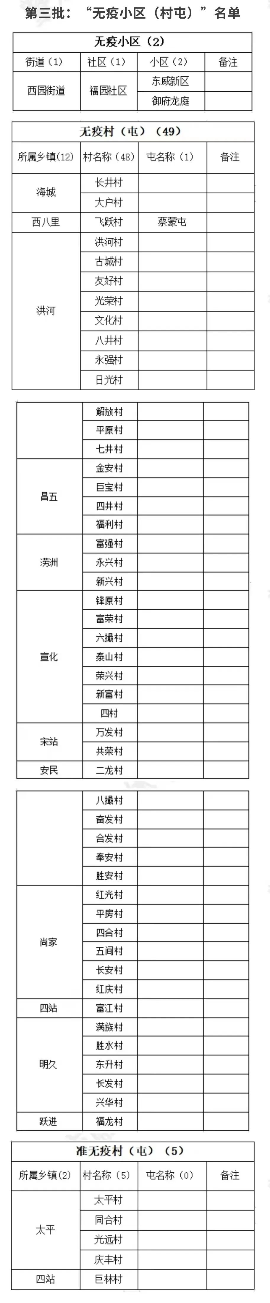 根據(jù)《肇東市“無(wú)疫小區(qū)(村屯)”創(chuàng)建工作方案(試行)》,經(jīng)肇東市各社區(qū)(村)申報(bào)、街道(鄉(xiāng)鎮(zhèn))審核,市專(zhuān)家組審定,第三批確定2個(gè)小區(qū)為“無(wú)疫小區(qū)”、49個(gè)“無(wú)疫村(屯)”、5個(gè)“準(zhǔn)無(wú)疫村(屯)”。