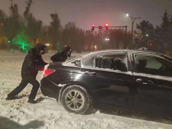 11月6日凌晨開始,大雪、降溫、大風等惡劣天氣接種而來,對市區內道路交通造成較大影響。責任就是擔當!為確保雪天道路暢通和群眾出行安全,肇東公安聞雪而動,浴“雪”奮戰,啟動惡劣天氣應急預案,強化對重點路段路口的警力部署,實施定崗指揮疏導交通、巡邏管控路面、安全疏導、應急救援及宣傳提示等應急舉措,確保雪天道路交通秩序整體安全、有序、暢通。