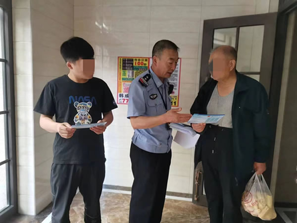 城鎮一中隊擔負著正陽大街及城區北的交通管理工作,同時還擔負著肇東第一中學、第八中學以及人民小學和三友小學上學放學時間段的交通維護工作。每天上放學時間,四個學校近900名教職員工、1萬多名學生,再加上近萬名學生家長,蜂擁而至、魚貫而出,不僅場面壯觀、浩浩蕩蕩,交通壓力和責任也是相當的大,容不得絲毫懈怠。每天早晨天剛放亮他就要起來,提前趕赴工作崗位;晚上一中每天都在21點30分放學,等他與護校民警們帶著疲憊的身體回到家中時也都在22點以后了。即使這樣,也沒有絲毫耽誤張曉偉下沉社區。按照市局的安排,下沉的民警可以在每周三、五的下午深入包扶的樓區走訪登記、組織開展市局部署的相關工作,但是張曉偉他們忙起來連周六、周天都得不到休息的,周三、周五就更加緊張了。在這種情況下他就采取了靈活機動的辦法,工作中一有閑暇時間就往包扶的樓區跑,就連三伏天午休時間都利用了起來。在父親家里簡單地吃上一口飯,拿起戶情登記簿就往外走。沒到10天,他就對萬福國際小區B13棟樓113戶住戶262人常住人口的情況摸得一清二楚。