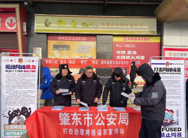 為深入推進打擊整治網絡謠言專項行動,營造良好的社會輿論氛圍,提升廣大群眾對網絡謠言的辨別能力。1月30日,肇東市公安局網安大隊聯合公共關系大隊采取多種形式的網絡謠言打擊整治專題宣傳活動。
