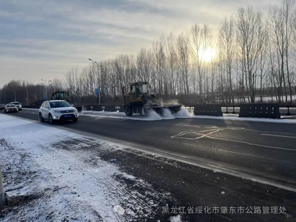 中心領導班子針對路況實際,細部署、嚴組織、實應對,加強應急值守,帶頭深入一線巡查,第一時間組織人員對積冰路段撒布融雪劑進行融冰,同時科學調度除雪機械、合理安排除雪人員,采取清雪設備除雪、鋪撒砂石料防滑等措施,力爭短時間內實現“一通二暢三凈”,確保春運行車安全有序。