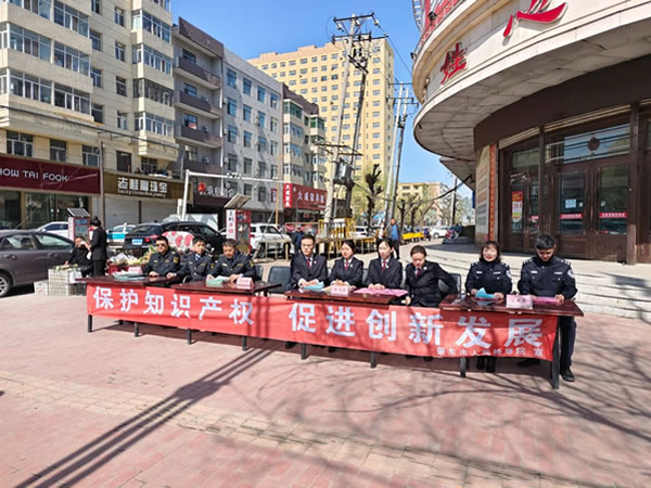 4月26日上午,在第24個“世界知識產權日”到來之際,肇東市公安局食藥環偵大隊聯合市場監督管理局、司法局、人民檢察院在肇東市四道街兄弟家電城門前開展“知識產權轉化應用、促進高質量發展”為主題的普法宣傳活動,進一步提升全民知識產權的保護意識。