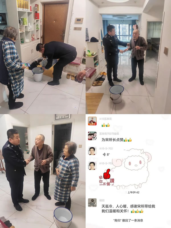 五一假期這天,萬福國際小區因線路問題,突然停水,A棟3單元的兩位老人剛要做飯,卻發現停水了,由于年紀大了下樓打水不方便,于是便在網格群里說了一句家里沒有水做不了飯。這一訴求被同在群內的奮斗派出所所長宋艷冬看在眼里,于是不到十分鐘便親自把生活用水送到了兩位老人家中,兩位老人激動地拉著宋所長的手,眼里飽含淚光和感激!
