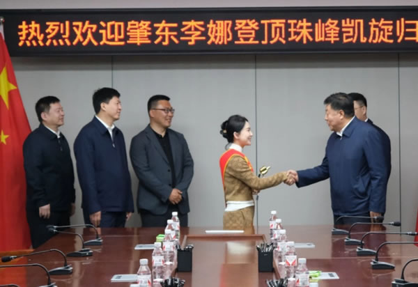 呂江首先代表市委、市政府對李娜成功登頂珠峰表示熱烈的祝賀。呂江指出,李娜克服重重困難成功登頂珠峰,成為全省首位登頂世界最高峰的女子登山愛好者,為家鄉增光添彩,是肇東的驕傲。特別是她在成功登頂后,仍懷著對家鄉的熱愛與情懷,主動宣傳家鄉文化旅游產業和正在舉辦的第二屆肇東小餅美食文化節,作為肇東人,她以實際行動為家鄉代言,讓肇東和肇東的特色美食美景走上了世界之巔,得到了更加廣泛的關注和宣傳。肇東的發展離不開每一位肇東人的努力和付出,希望李娜能一如既往的關心、關注和支持家鄉發展建設,宣推龍江,宣傳綏化,向外推介肇東。