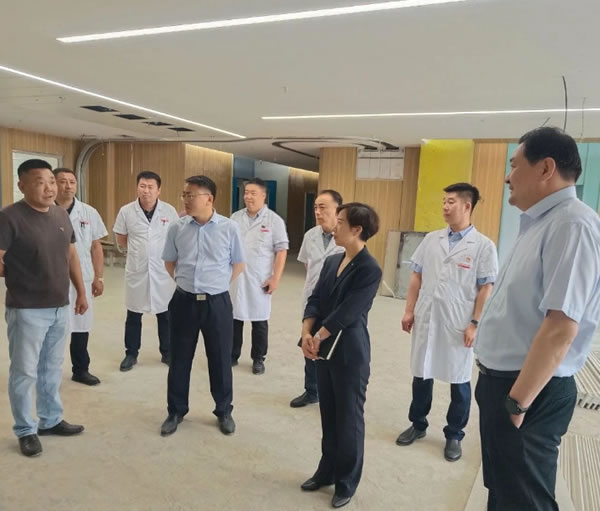 2024年6月12日上午,肇東市政府副市長杜美玲,衛健局黨組書記、局長柴洪波,衛健局黨組成員、副局長初哲一行蒞臨肇東市第一醫院,在第一醫院黨總支書記呂哲及全體院班子成員陪同下,深入了解了醫院新建綜合大樓工程的進展情況。