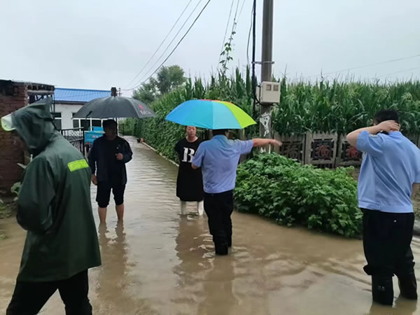 7月31日,肇東市轄區內突降暴雨。傍晚18時許,洪河派出所接轄區群眾楊某文求助稱自家院里進水被淹,需要幫助。洪河派出所民警立即出警,全力救援被困群眾。