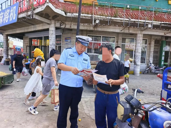 在昌五鎮(zhèn)中心商業(yè)區(qū),這里聚集了周邊鄉(xiāng)鎮(zhèn)眾多村屯群眾在此購物、游玩,人流、車流不息。宣傳民警深入到集市、商場等人員密集區(qū)域,結(jié)合當(dāng)前交通安全宣傳工作重點(diǎn)活動實(shí)際,通過大篷車巡回宣講、懸掛宣傳條幅、發(fā)放交通安全宣傳資料等多種宣傳方式,與群眾面對面溝通,、解答群眾關(guān)于交通法律法規(guī)方面的疑問,向廣大農(nóng)民群眾宣傳“一盔一帶”的重要性和農(nóng)用車違法載人、客貨混載、三超一疲勞、無牌無證、酒后駕駛等交通違法行為的危害性。宣傳講解《黑龍江省電動車管理?xiàng)l例》相關(guān)內(nèi)容,教育引導(dǎo)農(nóng)民群眾要遵守交通安全法律法規(guī),提高交通安全意識,自覺抵制各類交通違法行為。爭做文明出行的踐行人和傳播者。