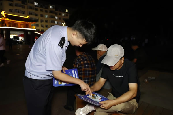 民警利用夜間群眾休閑納涼的有利時機(jī),通過集中宣傳和定點講解等方式,提醒群眾增強(qiáng)安全防范意識。同時,充分發(fā)揮社區(qū)群眾聚集多、消息傳播快、宣傳精度高優(yōu)勢,發(fā)放宣傳資料把“五防”知識送上門、讓安全知識深入人心。