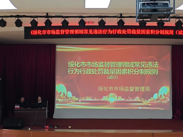 李英巍科長詳細闡述了市場監督管理領域常見違法行為行政處罰裁量因素積分制規則,并宣讀了《綏化市市場監督管理領域常見違法行為行政處罰裁量量化表》,此規則進一步規范了市場監督執法人員的自由裁量權,統一了我市市場監管部門行政處罰自由裁量權適用規則,統一行政處罰事項,統一法律依據,統一裁量幅度,為依法行政、合理行政提供了可靠依據,確保公正執法、統一執法。