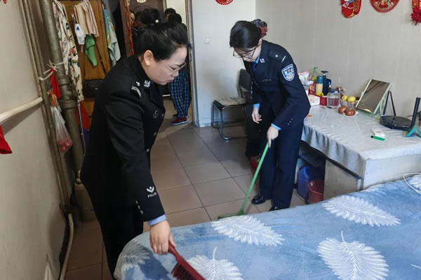 3月5日,奮斗派出所黨員民輔警深入轄區養老機構開展志愿服務活動。期間,民輔警為老人帶去水果、牛奶等慰問品,并與老人嘮家常,耐心傾聽他們的心聲,還幫助老人整理衣物、打掃衛生,用行動傳遞愛心,用善舉傳承美德,一句句溫馨的話語、一聲聲貼心的問候,讓老人們倍感溫暖。
