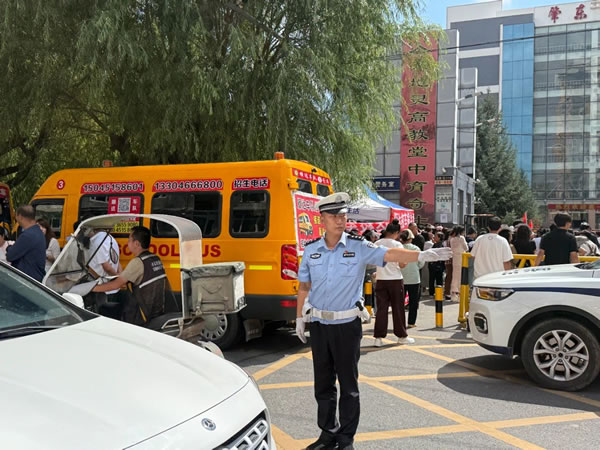 開學當日,護學崗民警提前到崗到位,在學校門口及周邊重點路段疏導交通,引導接送學生車輛有序停放,避免交通擁堵,確保學生安全、快速出入校園。在護學過程中,護學崗民警加強與學校安保人員的溝通協作,指導學校安保人員嚴格落實校園門禁制度,確保校園內部安全;同步開展安全宣傳教育,提醒學生遵守交通規則,注意自身安全。