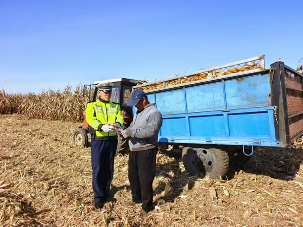 進入秋收時節,也正值國慶、中秋假期,為確保秋收農忙期間轄區農村道路安全形勢持續平穩,全力遏制和減少道路交通事故。肇東公安交管大隊民警放棄休息時間,積極開展“護農秋收”活動,筑牢農村地區交通安全防線。