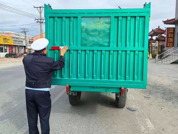 同時,積極開展“亮尾行動”。民警深入田間地頭和農戶家中,為沒有粘貼反光標識和反光標識陳舊的農用車輛及農業機械粘貼反光標識,消除事故隱患。農民朋友有的是沒時間或不知道到哪里買反光標識,宣傳民警親自上門免費粘貼,為他們解決了實際困難,農民朋友表示由衷的感謝。
