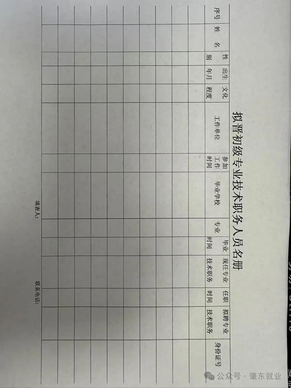 4、填寫《擬晉初級專業技術職務人員名冊》一份,內容填全。