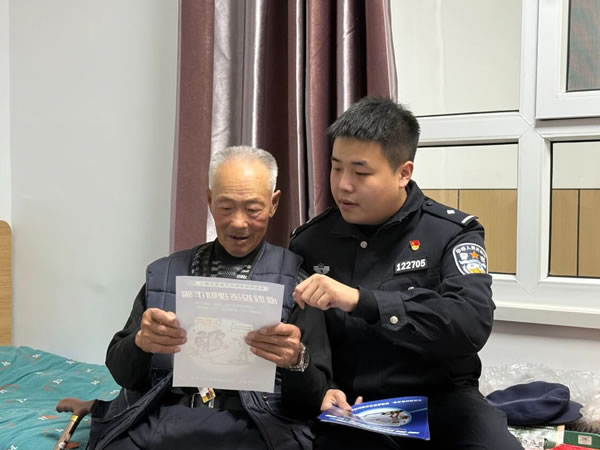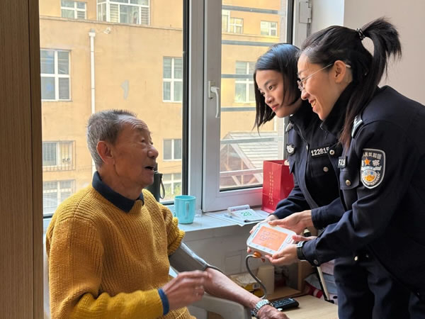 重陽節來臨之際,肇東市公安局反詐中心和奮斗派出所民輔警來到肇東市眾親養老院,給老人們送上了特殊的“節日安全”,用“警察藍”守護“夕陽紅”。民輔警從出行平安到財產安全,全方位為“銀齡老人”筑起安心屏障。