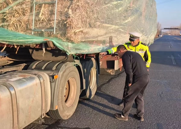 “師傅,您這車苫布沒固定牢,行駛中容易被風吹開,秸稈灑落不僅影響交通,還可能引發(fā)事故,我們幫您加固一下。”在檢查現(xiàn)場,每當發(fā)現(xiàn)苫布松散、捆綁不牢的車輛,民警都會主動協(xié)助駕駛員重新遮蓋,調(diào)整苫布位置、拉緊繩索、扣緊卡扣,反復(fù)檢查確認穩(wěn)固后才放行。并再三叮囑駕駛員途中要定時檢查,遇大風、降水等天氣務(wù)必減速慢行,用實際行動贏得了駕駛員的理解與配合。