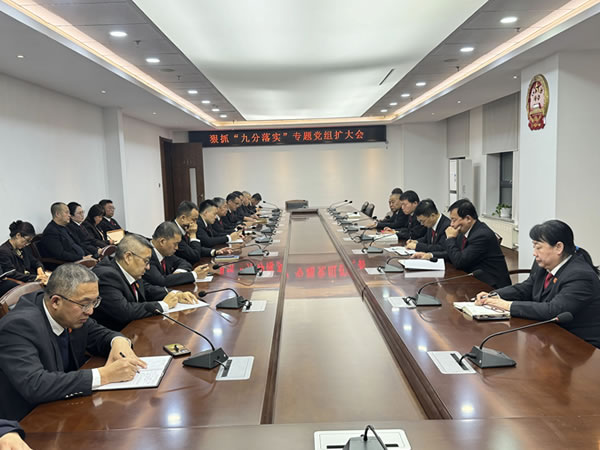 11月26日,肇東法院召開狠抓“九分落實”專題黨組擴大會,肇東法院黨組書記、院長郭延澤主持會議并講話、院領導班子成員及各部門負責人參加會議。