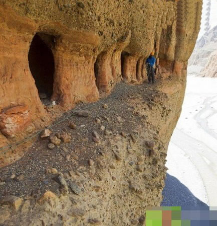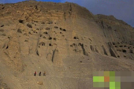 成千上萬(wàn)的人造洞穴位于喜馬拉雅山脈大峽谷中高達(dá)155英尺的懸崖上。
