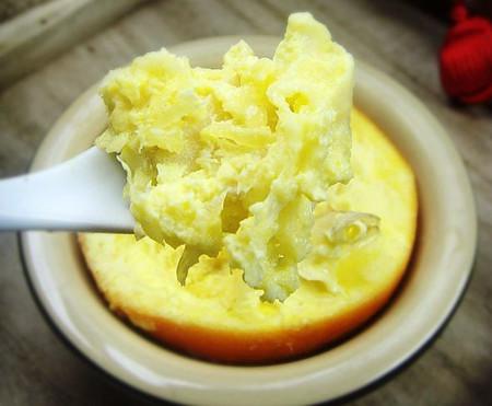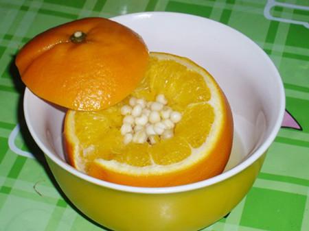 食材:香橙1個、雞蛋2個、蓮子15g、百合6g、冰糖4塊