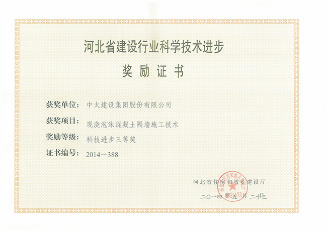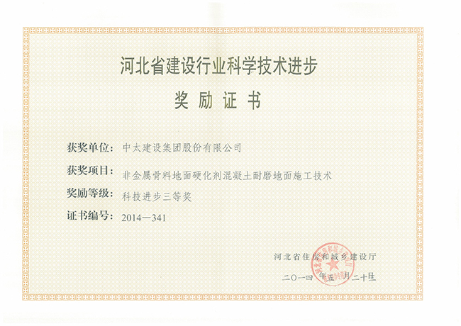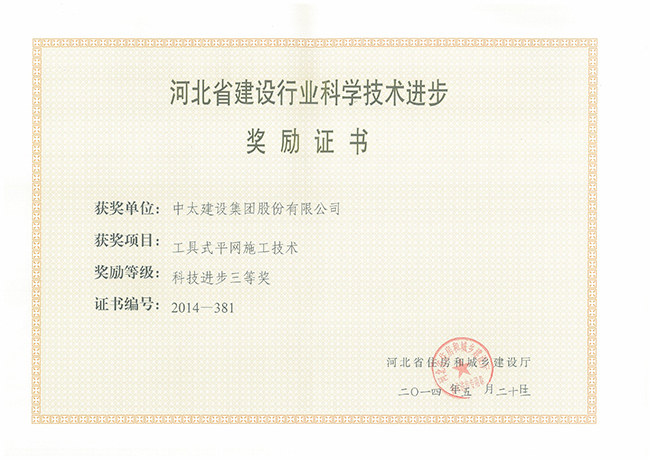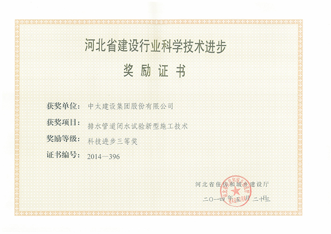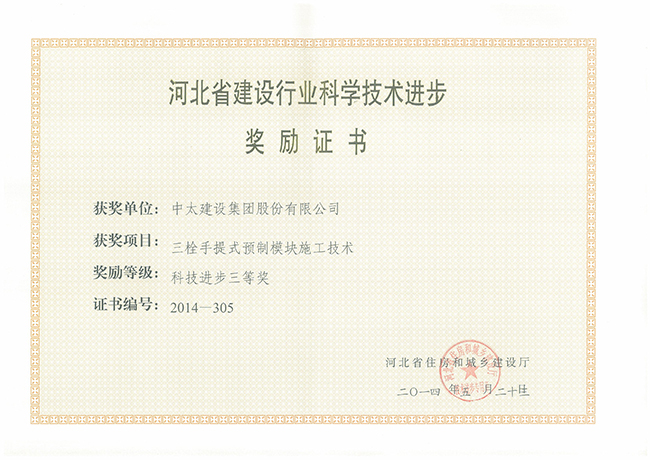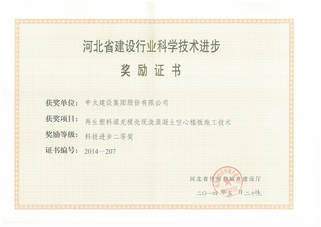 2014年河北省建設(shè)行業(yè)科學(xué)技術(shù)進(jìn)步獎(jiǎng)勵(lì)證書匯總