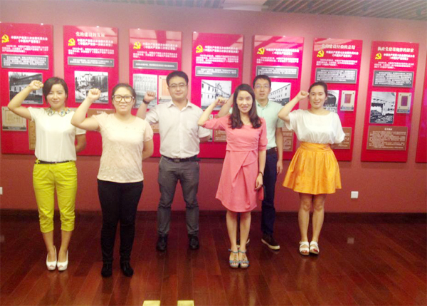 推開那扇厚重的石庫門老房子的房門,仿佛回到了過去那個(gè)戰(zhàn)火硝煙的年代。在講解員的認(rèn)真解說下,員工們共同重溫了中國共產(chǎn)黨的發(fā)展歷程,領(lǐng)略了建黨的艱辛與危險(xiǎn),更加體會(huì)到如今的勝利成果是有多么來之不易。滿眼的珍貴影像、圖文和實(shí)物資料,令員工們大開眼界并不由得心潮澎湃。面對(duì)那份業(yè)已發(fā)黃但卻對(duì)于中國革命具有重要意義的《中國共產(chǎn)黨宣言》,員工們駐足之前,領(lǐng)會(huì)著革命的艱辛,感受著革命黨人誓要建立偉大新中國的澎湃熱血和堅(jiān)定不移的信念。一行人不約而同地在榮譽(yù)室前莊嚴(yán)宣誓:“珍惜當(dāng)下,努力奮斗!”